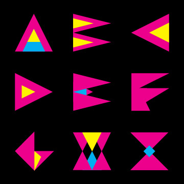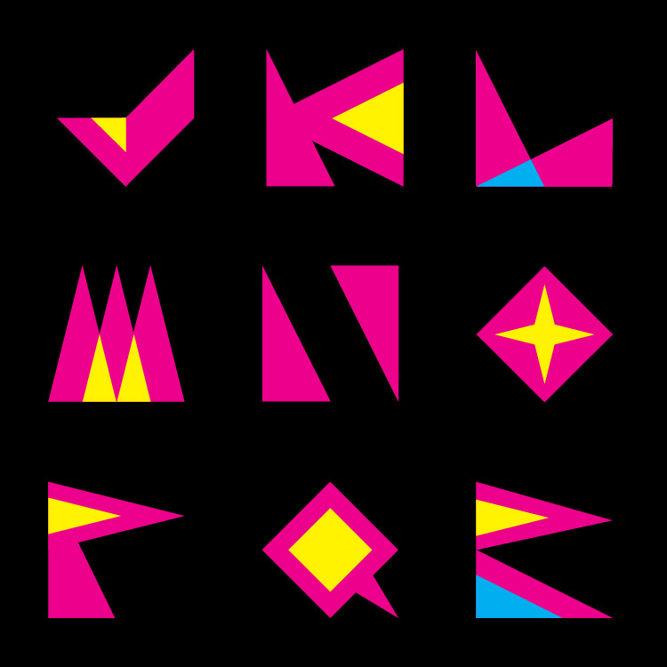 On the opposite end of the design spectrum: A vector graphic font using CMYK colors as the theme for a cool shape letter font.