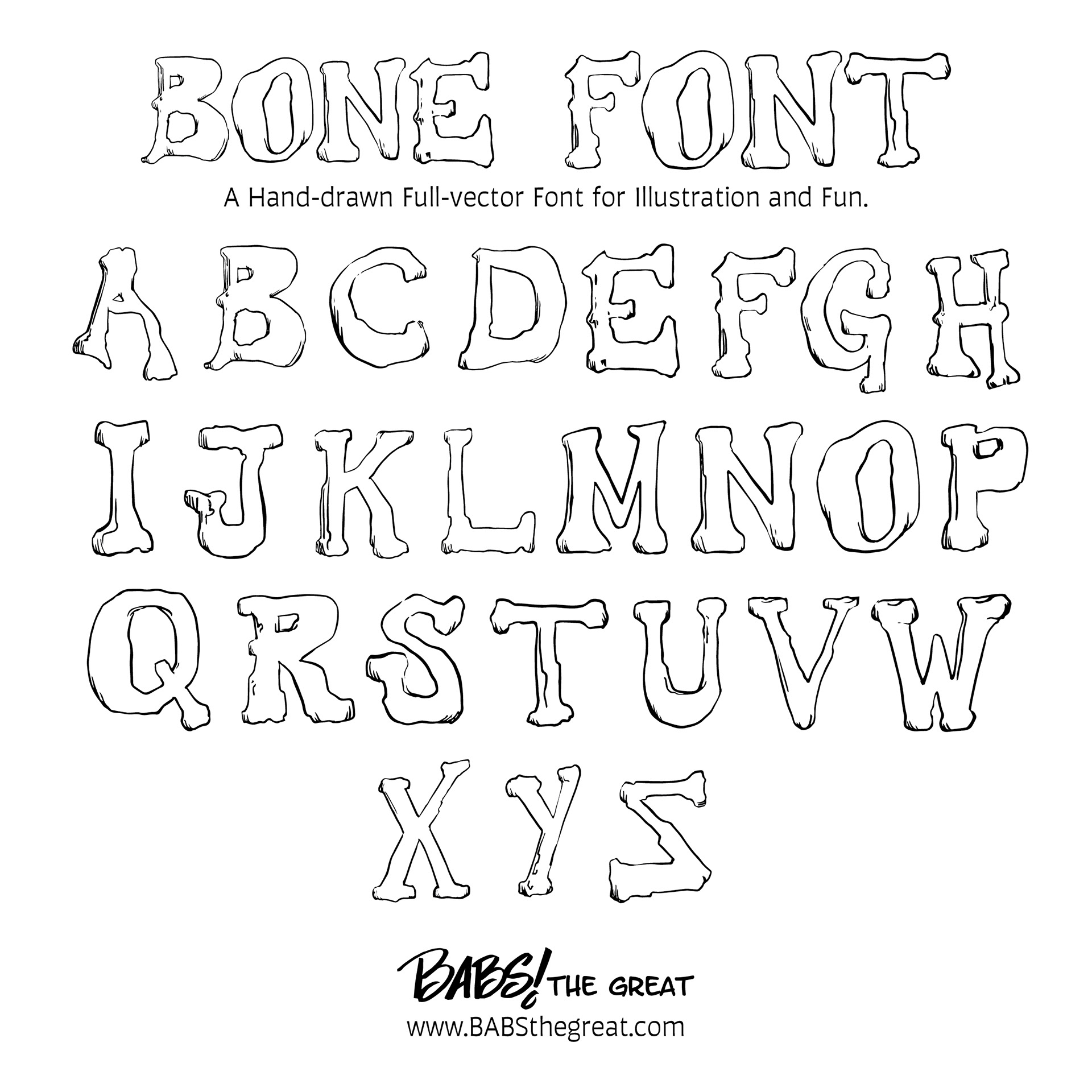 An original hand-drawn font, completely vectorized and used for cartoon illustration design.
