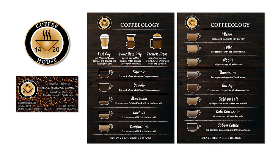 Complete logo design and corporate identity created for client. Print design included business cards, and Coffeeology Posters to match.